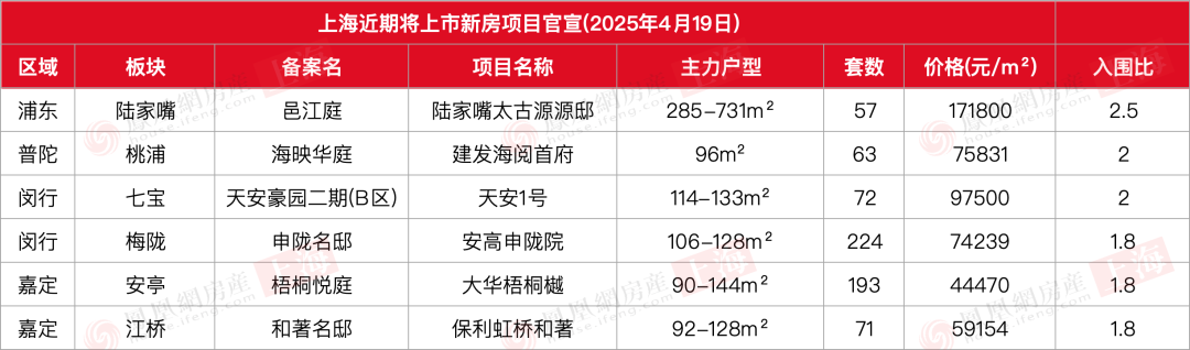 4月19日,上海网上房地产显示,上海新增上市6个商品住房项目,共约9万平方米,合计680套房源,分布在浦东、普陀、闵行以及嘉定区。