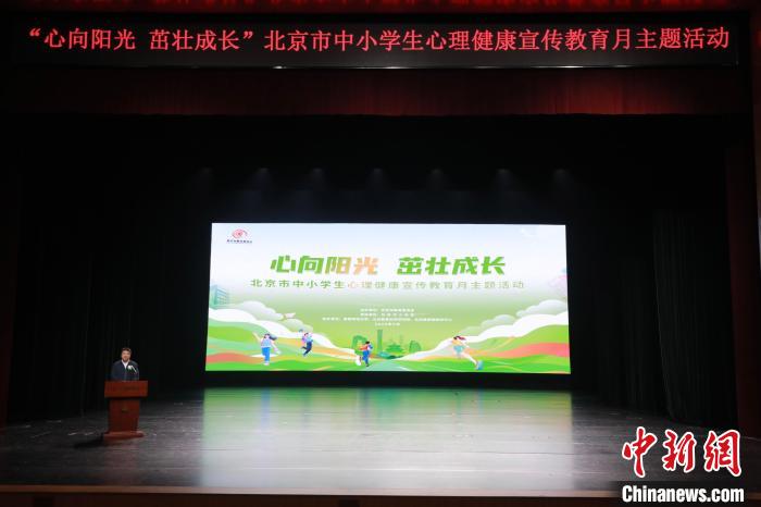 图为北京市中小学生心理健康宣传教育月主题活动。记者 陈杭 摄活动现场还举办了亲子“健康乐跑”和“同伴游园”,借助体育运动、亲子互动与游戏活动搭建亲子及同伴间的沟通交流平台,让参与者在“乐跑”中体悟体育精神,于“互动”里促进亲子关系,在“游戏”中掌握心理知识,着力打造“运动赋能+情感联结+社会协同”的学生身心健康促进模式。